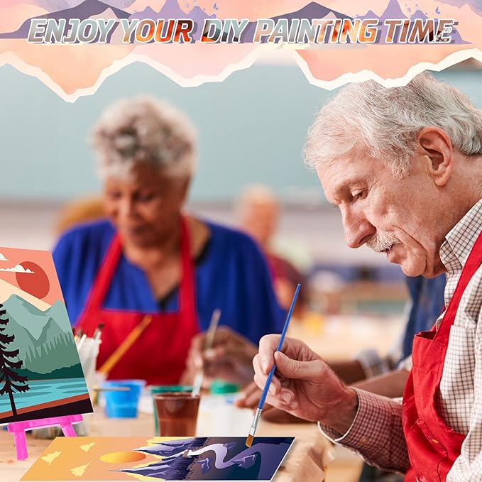 - 10 Pre Printed Canvases: 10 kinds of sunset patterns are engraved on the pre drawn board; Include sun, mountains and other patterns, the size of: 7 x 5 x 0.1inch/18 x 13 x 0.3cm, cute and easy, you can use the provided paint to color according to your own aesthetics, improve your painting creativity in the process, and also reduce stress and relieve anxiety