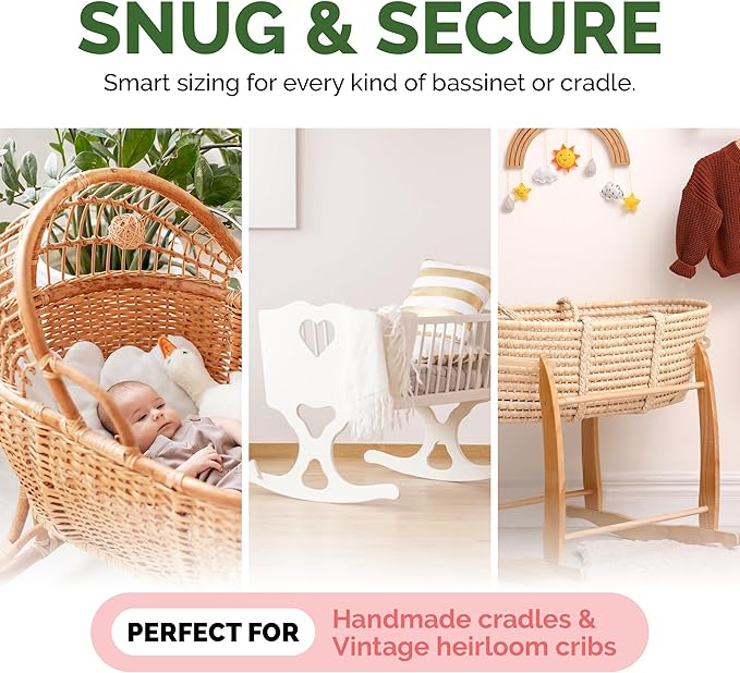 - CERTIFIED SAFE & MADE IN USA – Proudly made in the USA with non-toxic, hypoallergenic, flame-resistant, and antimicrobial certified materials. Free from dyes, toxins, and strong odors. Designed to support safe sleep in bassinets and cradles (not designed for cribs).