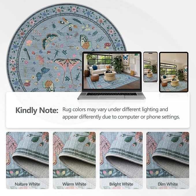 - Nature-Inspired Artistic Decor: Featuring intricate insect and botanical patterns, this Round Kitchen Rug adds unique natural charm to any room. Its slim profile easily slides under furniture, making it versatile for bedrooms, nurseries, or entryways