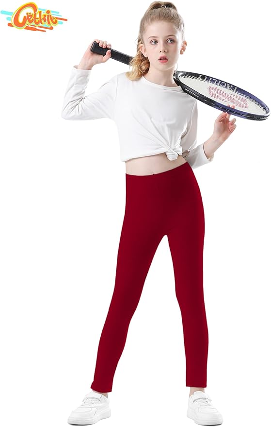 - Leggings for Toddler Girls, Ankle Length Cotton Girls Leggings Dark red, 2T