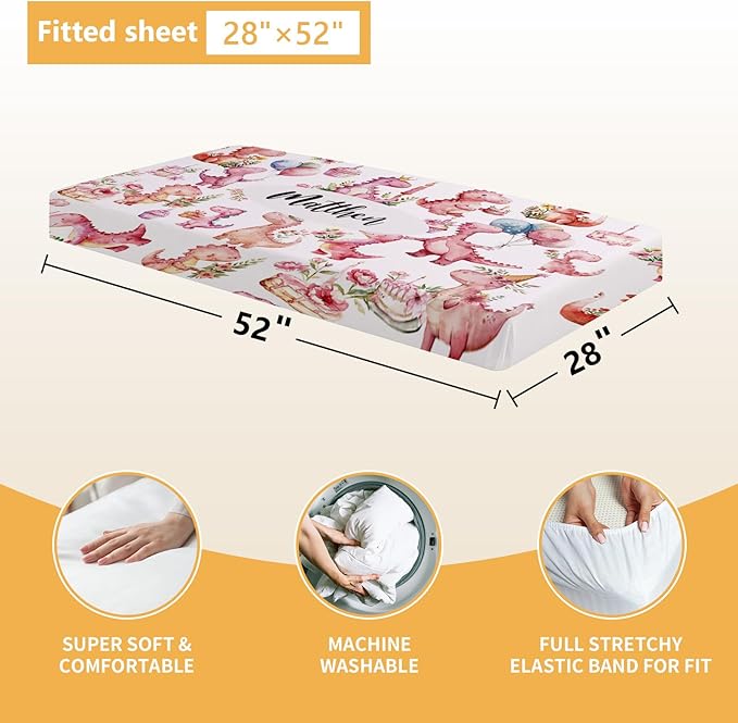 Custom Baby Crib Bedding Set - 5 Pcs Personalized Name Pink Dinosaurs Crib Set for Infants Toddlers Girls - Soft Double Layer Nursery Bedding Set - Customized Present for Birthday Baby Shower