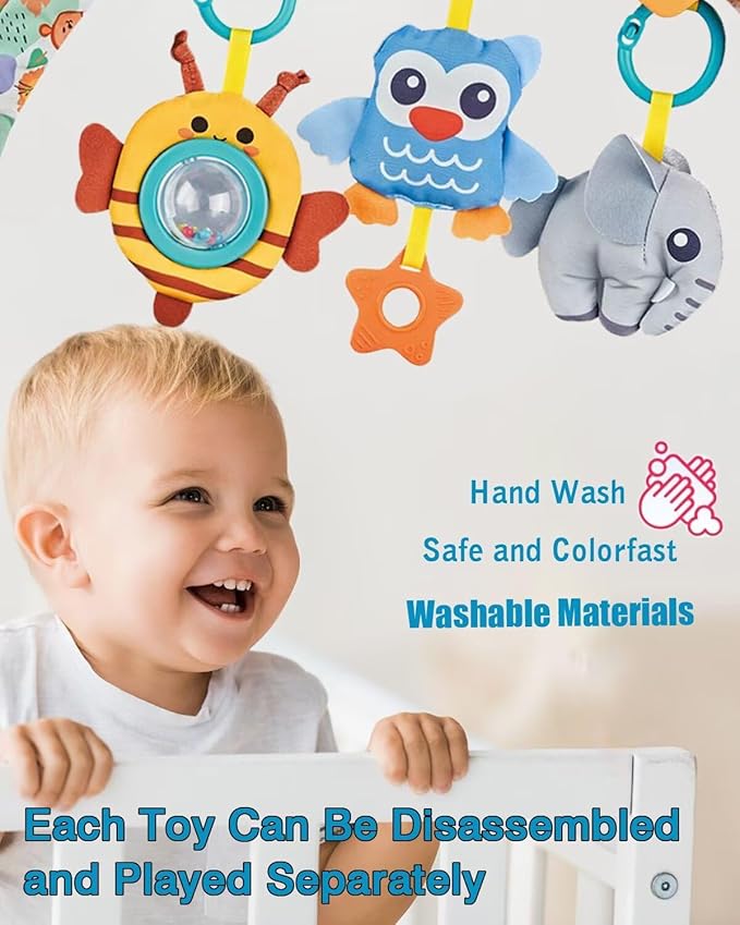 - Car seat toys,It is an early development toy.crib toys hanging made of washable materials.Each stroller toy can be detachable dsassembled and played separately.