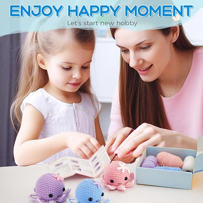- All-In-One Crochet Starter Kit:Beginner crochet kit includes everything you need to start: yarn, stuffing, needle, eyes, buckles, crochet hooks, scissors, octopus pattern, beginner's manual and Teaching videos