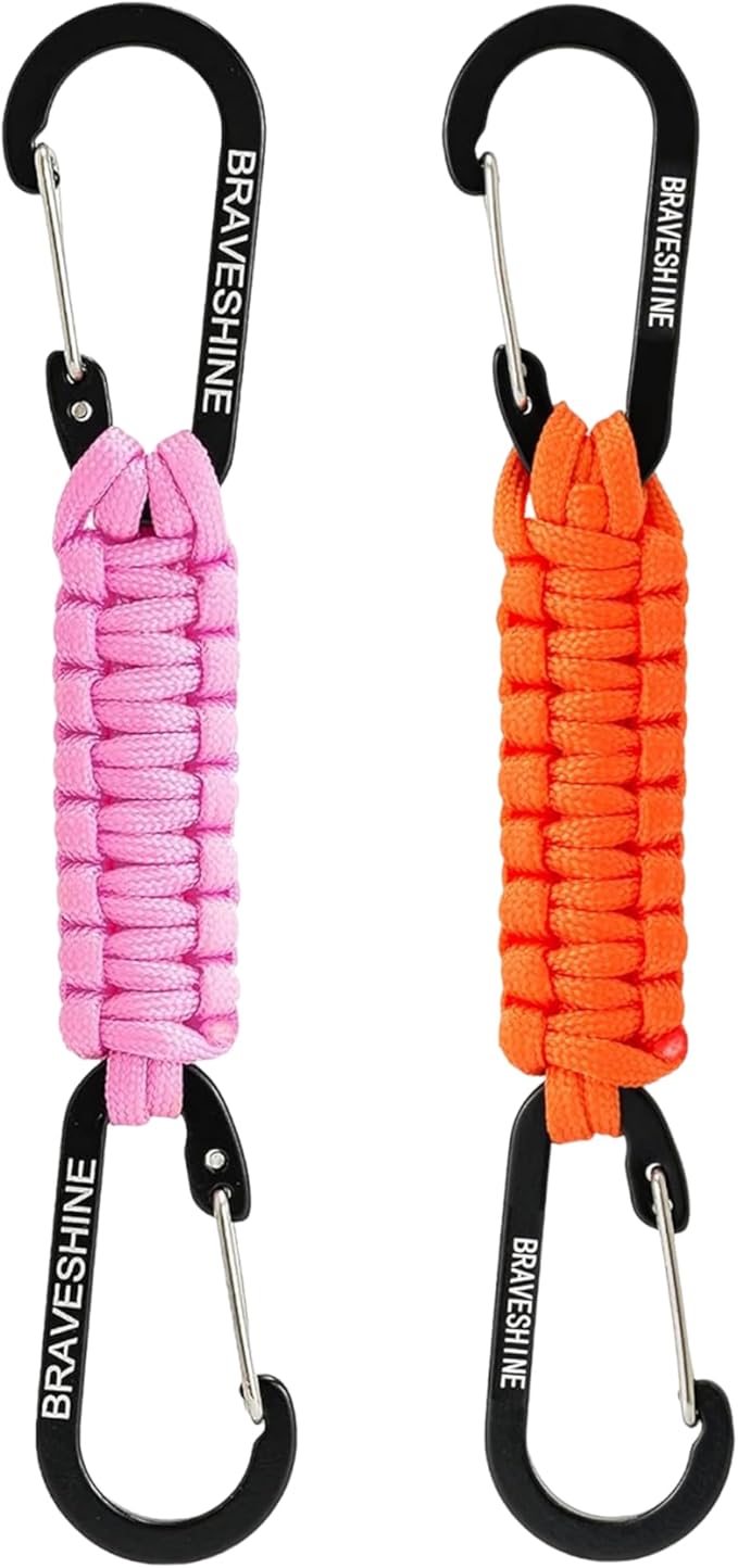 BRAVESHINE Paracord Keychain Carabiner Clip, D Ring Lanyard Hanger Stroller Hook for Water Bottle, Key, Backpacks, Men, Women