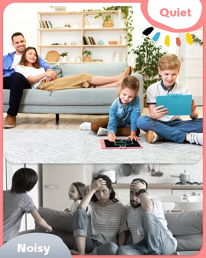 - PORTABLE AND DURABLE: Toddler writing tablet is made of durable plastic, plus round corner design, anti-fall and anti-shock, no need to worry kids drop it. The drawing tablet weights only 150 grams, easy to carry, place in school bags, handbags, travel bags. The toddler doodle board also can be used in multiple places: airplane, car, restaurant, sofa, etc. Car, airplane, hotel travel essentials for kids.