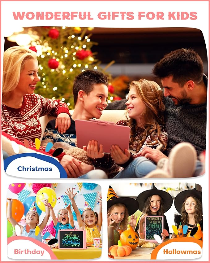 Bravokids Toys for 3 Years Old Girls Boys, LCD Writing Tablet 10 Inch Doodle Board, Electronic Drawing Pads, Educational Birthday Gift for 3 Years Old Kids Toddler (Light Pink)
