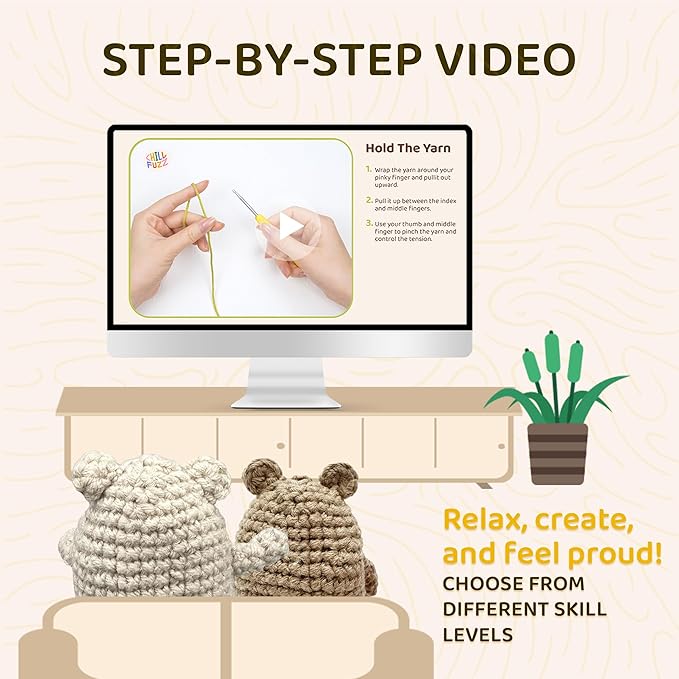 ChillFuzz Animal Crochet Kit Beginner Crochet Kit for Adults and Kids with Soft Yarn Hook and Instructions Cute Handmade DIY Gift Bear