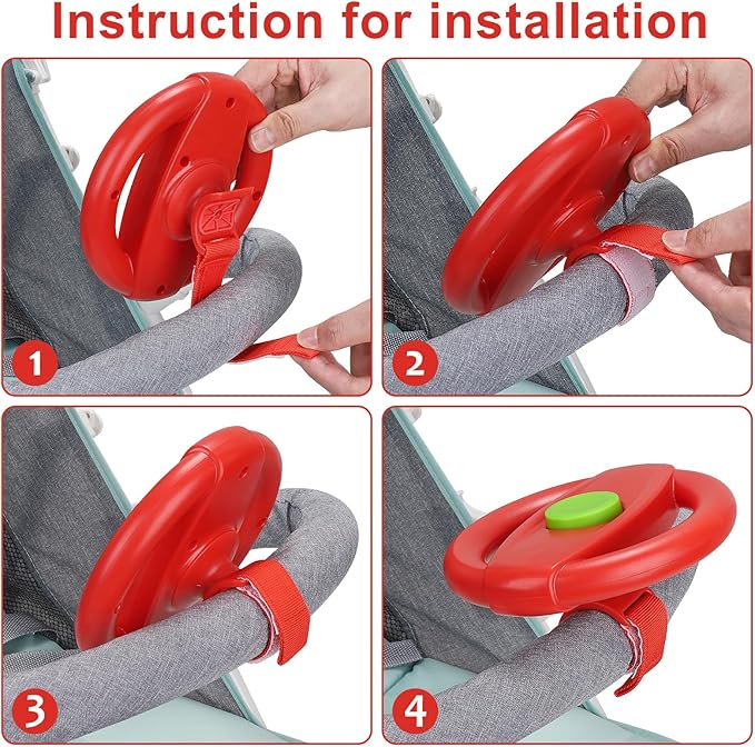 - Easy to Install: This steering wheel designed with a Velcro, remain stable and easily attached to stroller handlebar or any device with handles. Complete installation in a few seconds.