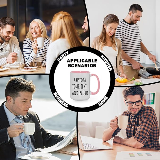 Custom Mug Upload Your Picture Personalized Coffee Mug with Photo Text Name Customized Cup Unique Ideas Gifts for Men Women Mom Dad Girlfriend Boyfriend Friend Family (Pink, 15oz)