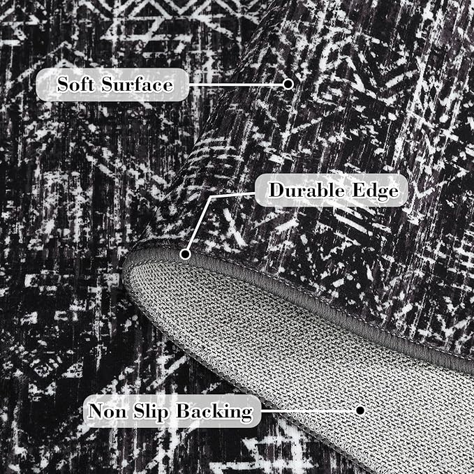 COZYLOOM Rug Runners 2x6 Washable Rugs for Bedroom Hallway Dining Room Living Room, Vintage Rug Non Slip Area Rug Geometric Soft Throw Rugs Low Pile Stain Resistant Carpet, Black