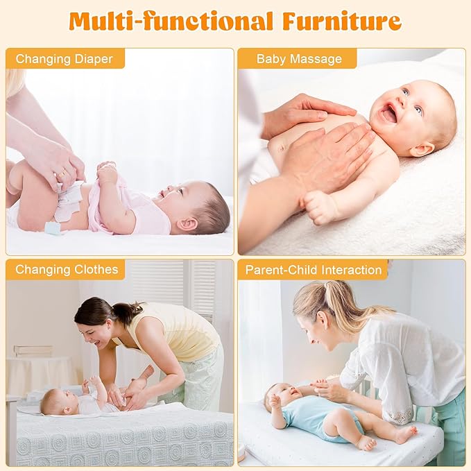 - Durable & Baby-Safe Design – Constructed from scratch-resistant, water-resistant MDF board for long-lasting use and effortless cleaning. The reinforced, elevated legs protect against moisture, while the soft-rounded edges minimize injury risks. Includes a sturdy anti-tip kit for added stability and peace of mind.